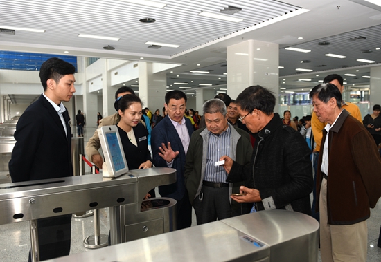 座談會開始之前,姜宏濤、劉海榮、王修奮等陪同老干部參觀新落成的??谄嚳傉?,姜宏濤董事長親自當起了“向?qū)?rdquo;,向老干部介紹??谄嚳傉粳F(xiàn)代化的自助售檢系統(tǒng)、智能化調(diào)度系統(tǒng)、信息發(fā)布系統(tǒng)、安防監(jiān)控系統(tǒng)以及先進的人臉識別、車牌識別,車輛自動檢測、自動報班等功能。老干部們被眼前一座現(xiàn)代化、智能化、生態(tài)型道路客運樞紐站所震撼,對公司近年來發(fā)展成果給予點贊。